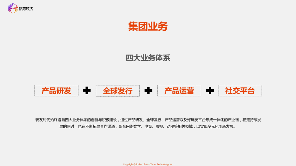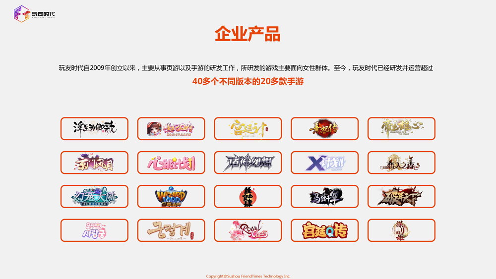 玩友時代---成立于2010年5月,是一家專注于移動互聯(lián)網行業(yè)的股份制公司,公司業(yè)務涵蓋游戲產品研發(fā)、手游發(fā)行運營、游戲資訊媒體、移動社交平臺、產業(yè)投資孵化等,總部位于中國?蘇州,在韓國、香港、上海、杭州等地均設有分支機構。