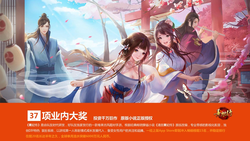 公司研發(fā)的多款古風宮廷題材手游在市場中擁有較高占有率和用戶群體。其中代表作品《熹妃傳》、《熹妃Q傳》、《京門風月》、《宮廷計》等精品手游,受到眾多玩家青睞并獲得多項業(yè)類大獎,同時在港澳臺、韓國、東南亞、北美等海外地區(qū)也享有盛譽。目前公司已擁有多款全平臺產品及較大的用戶群體。