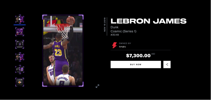而NBA推出的 TOP SHOT平臺(tái)上,有著比球星卡更為豐富和先進(jìn)的理念,除了常規(guī)的文字和圖片之外,所發(fā)行的對(duì)應(yīng)NFT還有GIF和短視頻,同樣是根據(jù)卡牌的球星級(jí)別和稀有程度來(lái)決定。最重要的是,相比傳統(tǒng)的實(shí)體球星卡銷售速度、辨別真?zhèn)蔚葐?wèn)題,NBA通過(guò)在區(qū)塊鏈上鑄造NFT,這些問(wèn)題自然就迎刃而解了。